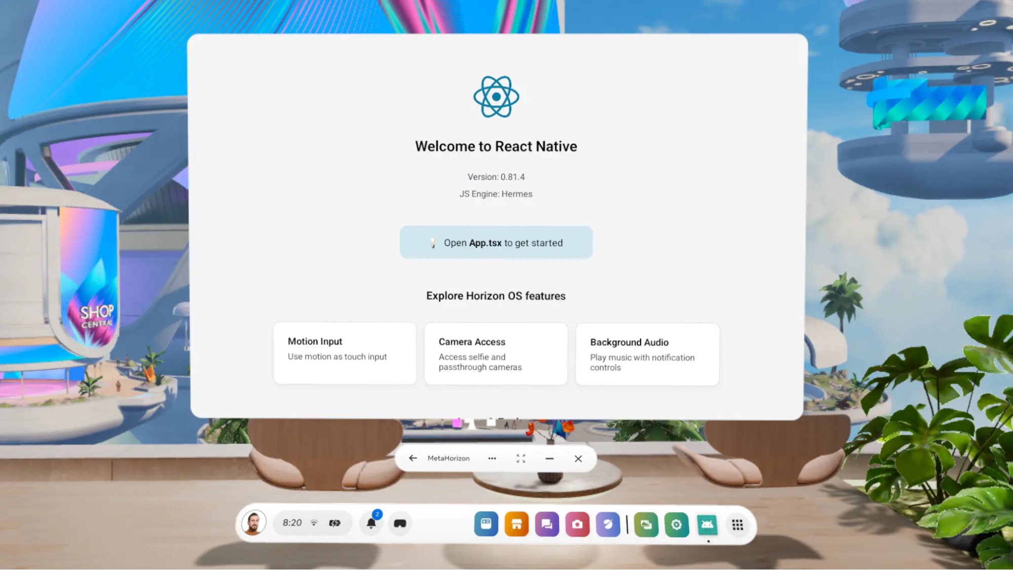 Meta Quest devices run Meta Horizon OS, an Android-based operating system. From a React Native perspective, this means all of the existing Android tooling, build systems, and debugging workflows work with minimal changes. For developers already building React Native apps on Android, much of existing development model carries over.
